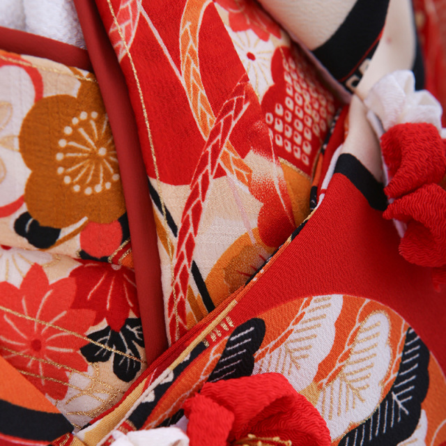 | ※2 | マネキン人形の着物・被布セットと草履・巾着(バッグ)・髪飾りの各単品画像と同じ物がセットとなります。(写真画像で掲載していない小物は当店にて合わせます。) |