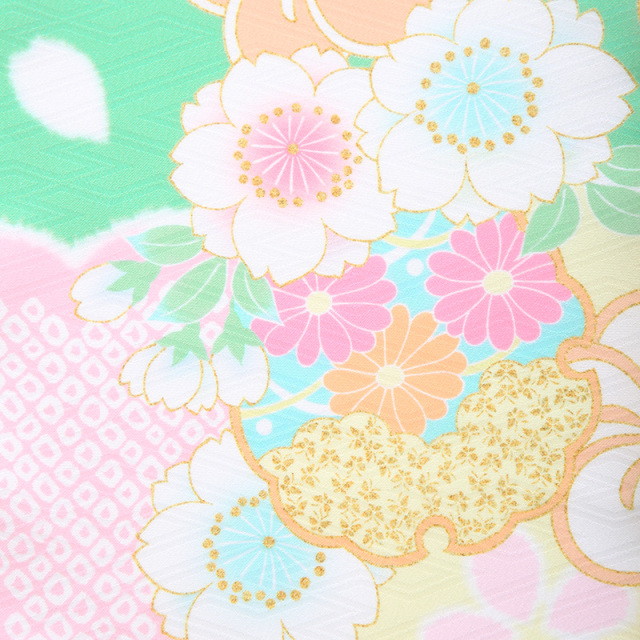 | ※2 | マネキン人形の着物・被布セットと草履・巾着(バッグ)・髪飾りの各単品画像と同じ物がセットとなります。(写真画像で掲載していない小物は当店にて合わせます。) |
