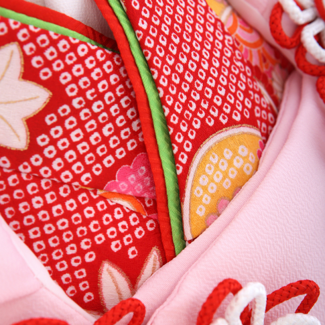 | 付属品 | 女の子七五三(3歳被布セット)に含まれる物:着物・被布コート・襦袢・草履・巾着・足袋・腰紐(3本)・髪飾り ※簡単な着付け動画で確認できます。 |