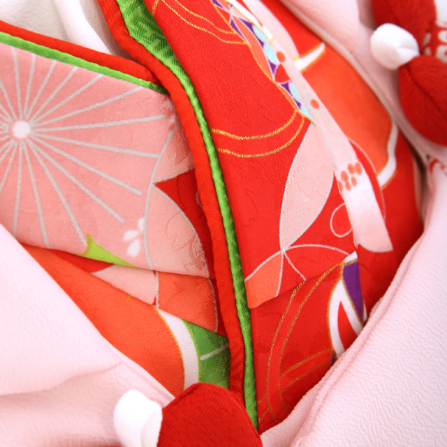 | 付属品 | 女の子七五三(3歳被布セット)に含まれる物:着物・被布コート・襦袢・草履・巾着・足袋・腰紐(3本)・髪飾り ※簡単な着付け動画で確認できます。 |