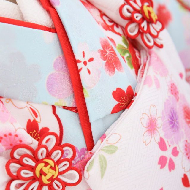 | 付属品 | 女の子七五三(3歳被布セット)に含まれる物:着物・被布コート・襦袢・草履・巾着・足袋・腰紐(3本)・髪飾り ※簡単な着付け動画で確認できます。 |