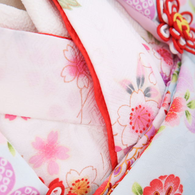 | 付属品 | 女の子七五三(3歳被布セット)に含まれる物:着物・被布コート・襦袢・草履・巾着・足袋・腰紐(3本)・髪飾り ※簡単な着付け動画で確認できます。 |
