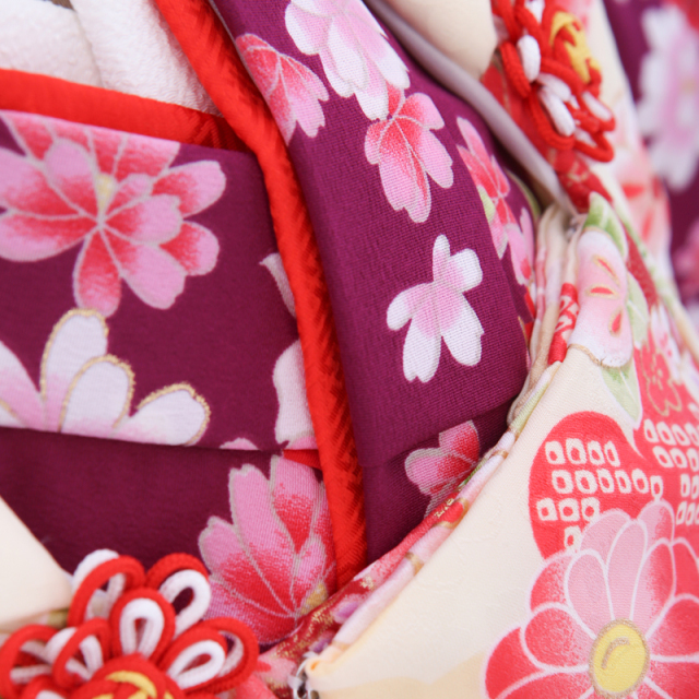 | 付属品 | 女の子七五三(3歳被布セット)に含まれる物:着物・被布コート・襦袢・草履・巾着・足袋・腰紐(3本)・髪飾り ※簡単な着付け動画で確認できます。 |