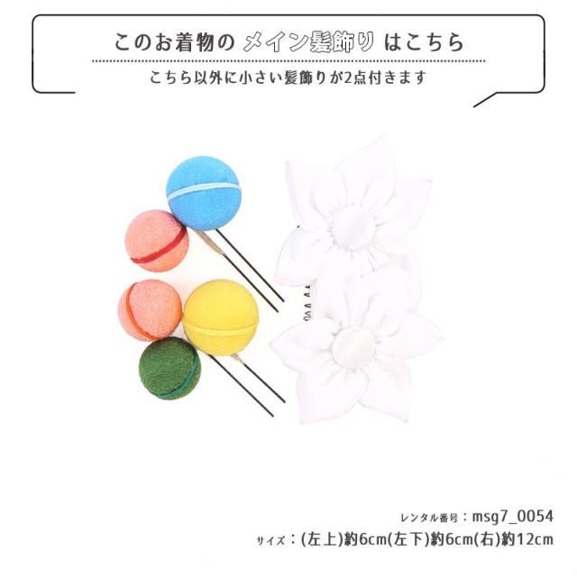 | コーディネート | 女の子七五三(7歳女の子用)に含まれる物:着物、長襦袢(カット袖)、作り帯、草履、バッグ、帯揚げ、箱迫、帯〆、しごき、末広(扇子)、足袋、腰紐(3本)、コーリンベルト、伊達締め、髪飾り |