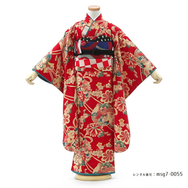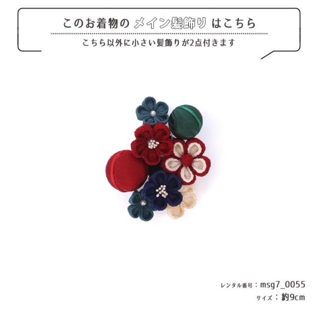 | コーディネート | 女の子七五三(7歳女の子用)に含まれる物:着物、長襦袢(カット袖)、作り帯、草履、バッグ、帯揚げ、箱迫、帯〆、しごき、末広(扇子)、足袋、腰紐(3本)、コーリンベルト、伊達締め、髪飾り |