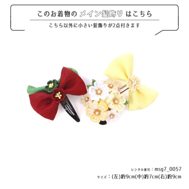 | コーディネート | 女の子七五三(7歳女の子用)に含まれる物:着物、長襦袢(カット袖)、作り帯、草履、バッグ、帯揚げ、箱迫、帯〆、しごき、末広(扇子)、足袋、腰紐(3本)、コーリンベルト、伊達締め、髪飾り |