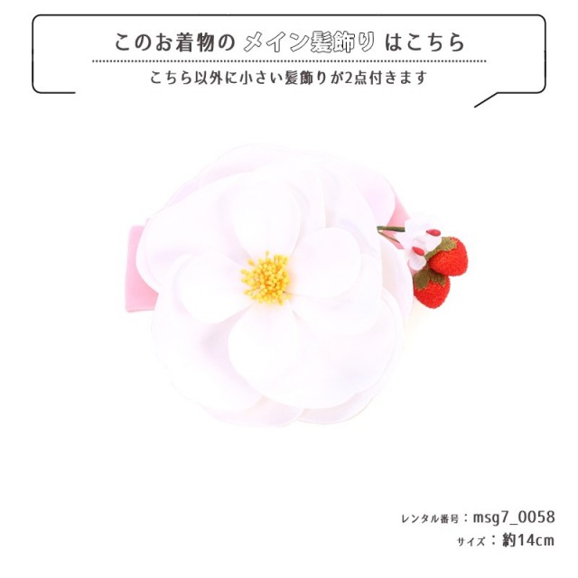 | コーディネート | 女の子七五三(7歳女の子用)に含まれる物:着物、長襦袢(カット袖)、作り帯、草履、バッグ、帯揚げ、箱迫、帯〆、しごき、末広(扇子)、足袋、腰紐(3本)、コーリンベルト、伊達締め、髪飾り |