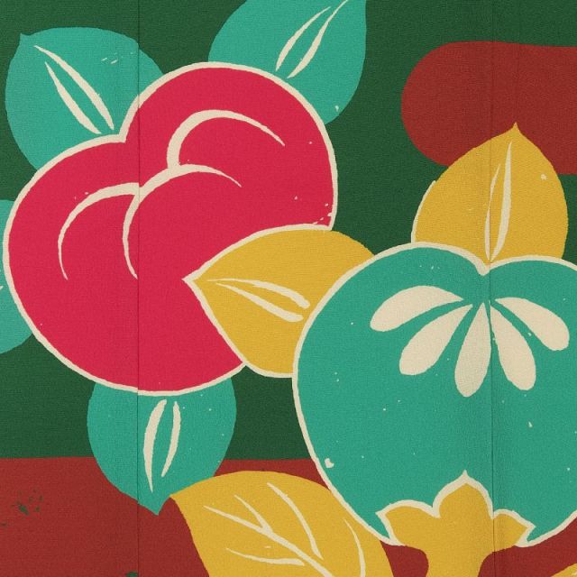 落ち着いた深緑色とえんじ色の背景に、丸く大きく鮮やかな橘の実が目を引く、大胆な構図の着物です。右近の橘で知られる橘は、不老不死の理想郷で育ち、不思議な力を持つ縁起の良い植物として古くから着物の柄に描かれてきました。また、橘をはじめとする植物の実の文様は、豊かな実りを願う吉祥文様でもあります。七五三としてはややシックな地色ですが、それに対して橘に遣われた色の綺麗さと構図の大胆さがよく映え、全体としては明るい印象に仕上がっています。お顔周りに肩の橘の明るい色が添えられること、帯周りの小物が華やかであることから、写真写りも明るくなるでしょう。帯は黒地に、手鞠が描かれたもの。手鞠は、物事が丸くいく、との願いを込めて贈り物にする風習も見られる、こちらも縁起の良い文様です。帯揚げ、帯締めはお嬢さんらしい真っ赤なものを合わせました。パールが使われたカラフルな帯締めも、若々しさを添えてくれます。7歳の七五三の衣装を少し落ち着いたものにすると、3歳の時との違いが際立ち、その成長ぶりも嬉しいもの。少しお姉さんらしい装いに身を包み、これからのご成長に思いを馳せて、晴れの日を過ごされてはいかがでしょうか。