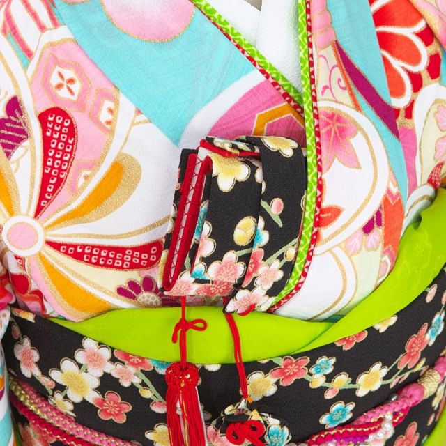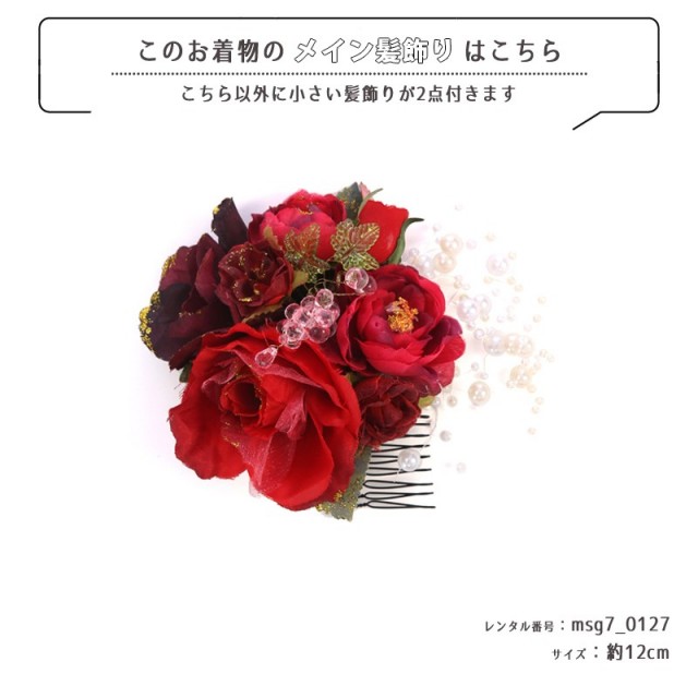 | コーディネート | 女の子七五三(7歳女の子用)に含まれる物:着物、長襦袢(カット袖)、作り帯、草履、バッグ、帯揚げ、箱迫、帯〆、しごき、末広(扇子)、足袋、腰紐(3本)、コーリンベルト、伊達締め、髪飾り |