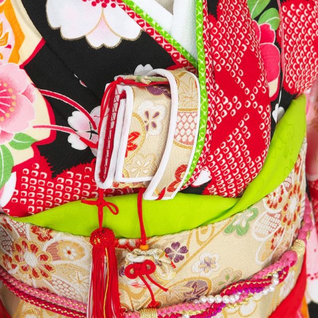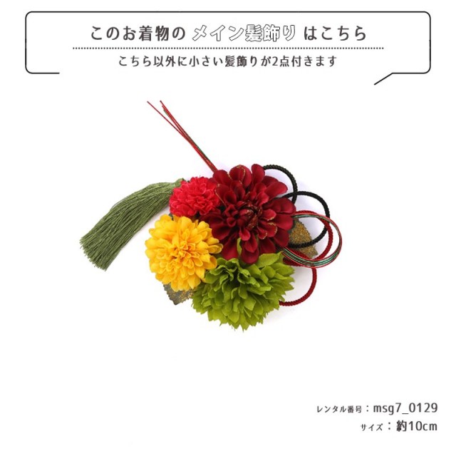 | コーディネート | 女の子七五三(7歳女の子用)に含まれる物:着物、長襦袢(カット袖)、作り帯、草履、バッグ、帯揚げ、箱迫、帯〆、しごき、末広(扇子)、足袋、腰紐(3本)、コーリンベルト、伊達締め、髪飾り |