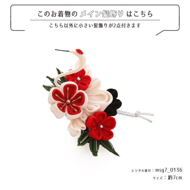 | コーディネート | 女の子七五三(7歳女の子用)に含まれる物:着物、長襦袢(カット袖)、作り帯、草履、バッグ、帯揚げ、箱迫、帯〆、しごき、末広(扇子)、足袋、腰紐(3本)、コーリンベルト、伊達締め、髪飾り |