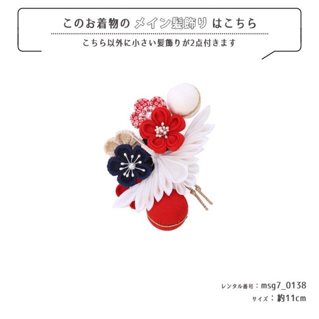 | コーディネート | 女の子七五三(7歳女の子用)に含まれる物:着物、長襦袢(カット袖)、作り帯、草履、バッグ、帯揚げ、箱迫、帯〆、しごき、末広(扇子)、足袋、腰紐(3本)、コーリンベルト、伊達締め、髪飾り |