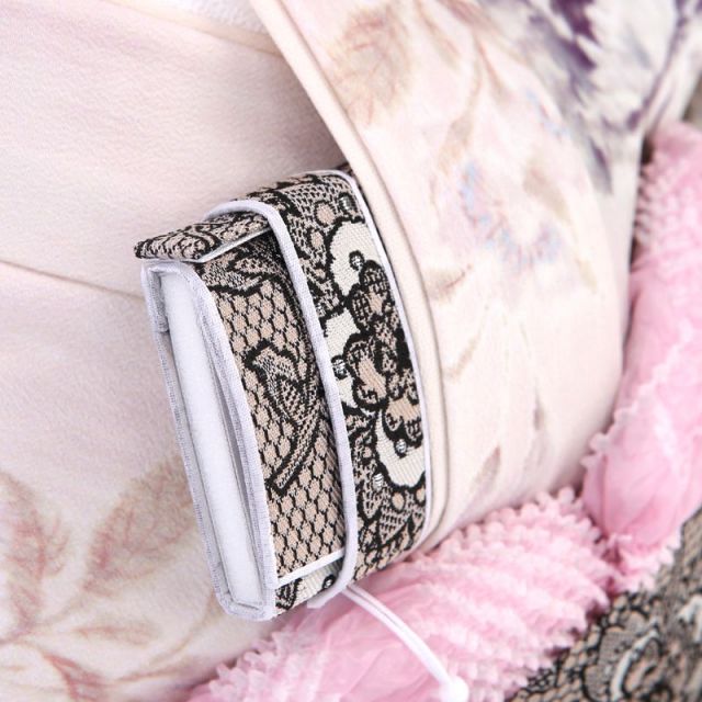 着物は伝統的でなければいけないと思っている方も多いですが、近年は個性的なデザインのものも多く、こちらの着物も素敵な女性の洋服を提案してきたJILL STUARTならではのモダン要素たっぷりの1着です。薄いピンクが基調となっており、全体的に淡い印象。特に着物に描かれた花と帯のデザインが個性を放っています。着物の絵柄は筆でこすってぼやかしたかのようで、抽象的な印象ですが、紫・青・白の日本女性を表す「撫子」を思わせる花が淡く綺麗です。紫と白の花には一部刺繍が施されている箇所があり、優美な仕上がりとなっています。また特に個性的な帯は、ピンクの地色に黒を使って文様を描いていおり、まるでレースのよう。伝統的な帯にはなかなか無いデザインとなっています。デザイン自体は斬新で現代的ではありますが、着物であることは変わリません。着物という伝統を守りながらも新しいスタイルに挑戦しているとてもかっこいいお着物とも言えます。個性的なお着物をお探しの方にはぴったりのコーディネートです。