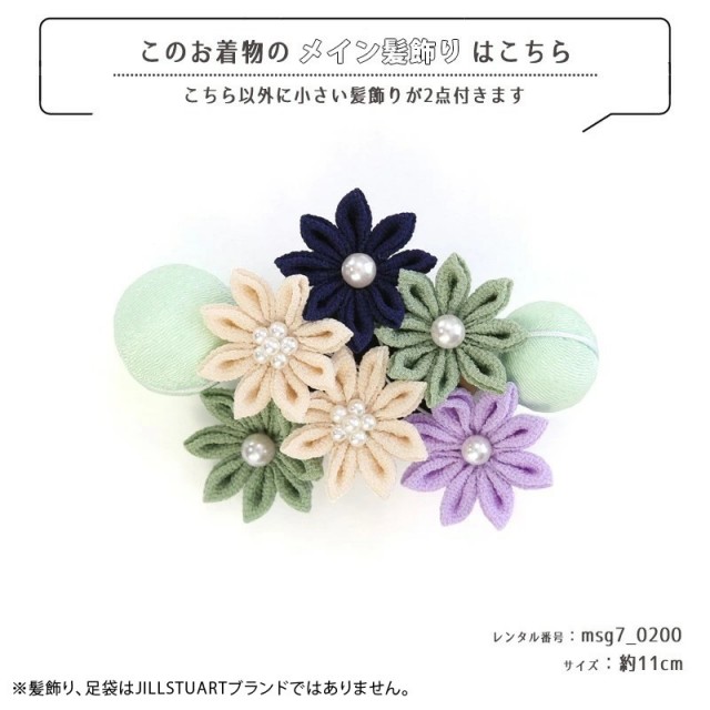 | コーディネート | 女の子七五三(7歳女の子用)に含まれる物:着物、長襦袢(カット袖)、作り帯、草履、バッグ、帯揚げ、箱迫、帯締め、しごき、末広(扇子)、足袋、腰紐(2本)、コーリンベルト、伊達締め、髪飾り |