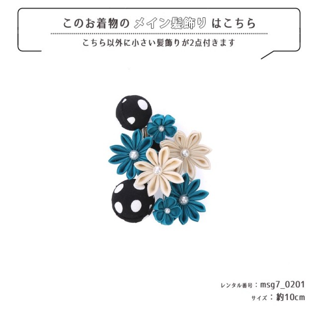 | コーディネート | 女の子七五三(7歳女の子用)に含まれる物:着物、長襦袢(カット袖)、作り帯、草履、バッグ、帯揚げ、箱迫、帯〆、しごき、末広(扇子)、足袋、腰紐(3本)、コーリンベルト、伊達締め、髪飾り |