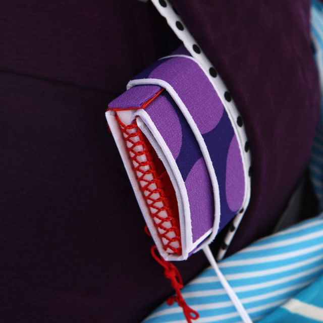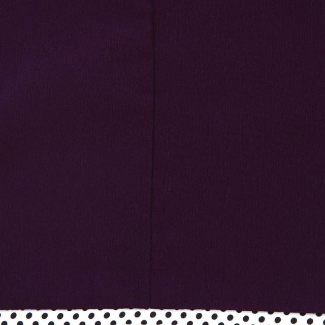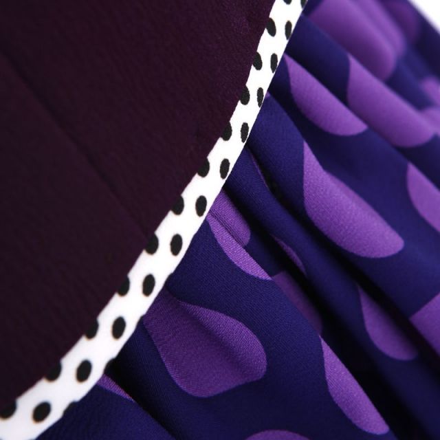 紫は聖徳太子の時代から高貴な色として大切にされてきて、女性の着物の色として今でも人気があります。そんな上品な色を使いながら、ポップな小物と色を合わせてモダンに仕上げているこちらのお着物。紫一色ですが、着物を織った時に入れる地紋が入っているので、完全な無地でなく、おしゃれな仕上がりとなっています。帯にはおめでたい古典文様である「梅」を描きながらも、ポップな水色と斜めに入る線がモダンな印象。それに加え、箱迫と着物下に使われる水玉や、しごきに使われる赤が個性的な光を放っています。着物の下に着用するスカートは、着物と長襦袢とは別にセットに入っているウエストゴム付きのスカートで、着物の丈を少し短く着付ければ、着物の下に簡単に着用することができます。もちろん、普通に着物を着たいとお考えの方はこのスカートを使わずに普通に着付けをしていただけます。お手元に届いてからスカートを使うかどうか考えることもできますので、ぜひ最新の2wayスタイルをお試しください。