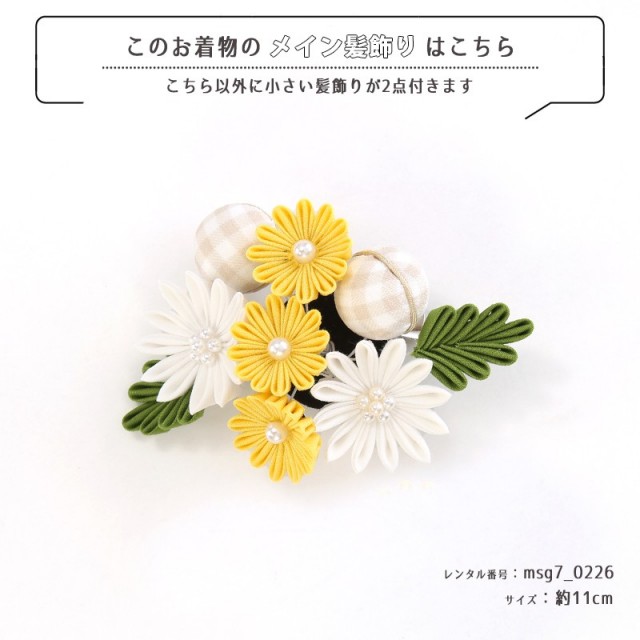 | コーディネート | 女の子七五三(7歳女の子用)に含まれる物:着物、長襦袢(カット袖)、作り帯、草履、バッグ、帯揚げ、箱迫、帯〆、しごき、末広(扇子)、足袋、腰紐(3本)、コーリンベルト、伊達締め、髪飾り |