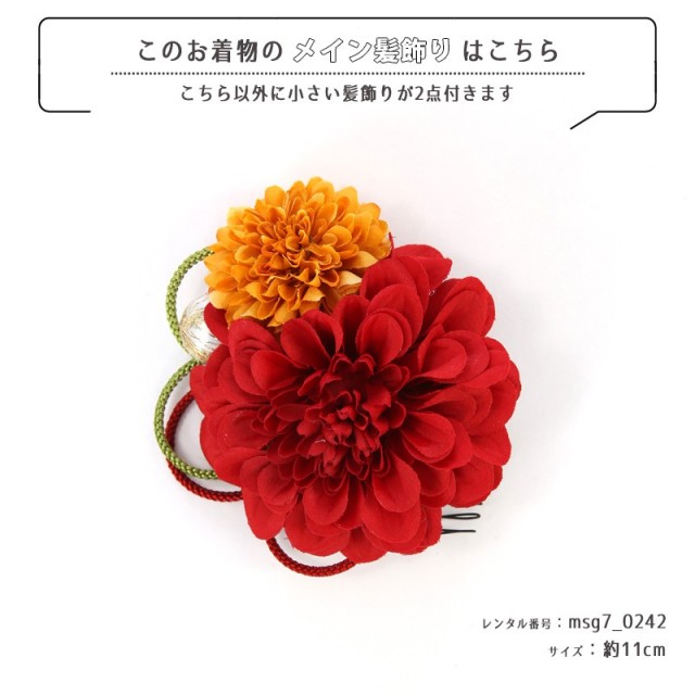 | コーディネート | 女の子七五三(7歳女の子用)に含まれる物:着物、長襦袢(カット袖)、作り帯、草履、バッグ、帯揚げ、箱迫、帯〆、しごき、末広(扇子)、足袋、腰紐(3本)、コーリンベルト、伊達締め、髪飾り |