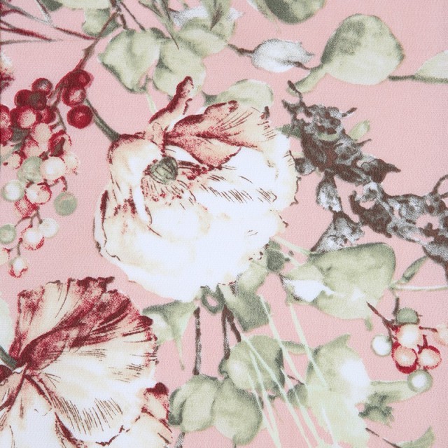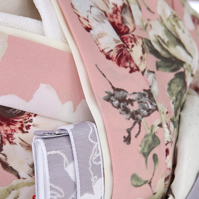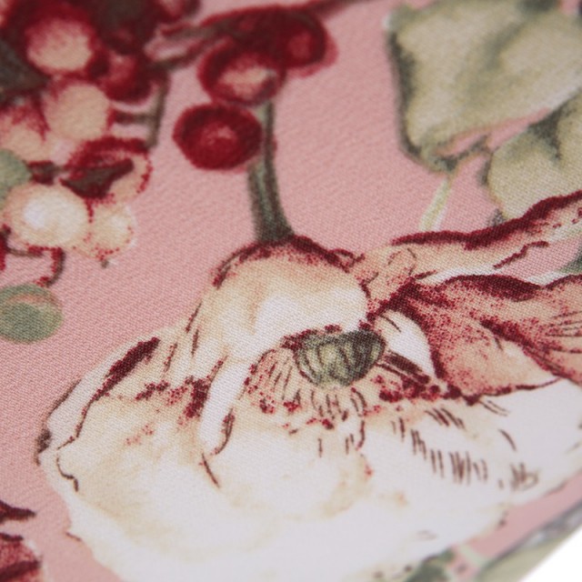 見ているだけで心が華やぐ、上品で女性らしいピンク色の着物。着物地の優しいピンクは「乙女色」と呼ばれます。色名も可愛く、黄みを含んだ淡いピンクで、乙女椿の花が由来しています。乙女椿は早春に八重咲きの花をつける椿で、花言葉は控えめな美。その言葉通り、柔らかく優しい美しさが印象的です。文様は、洋風さを感じさせ、豪華な花々が全体に描かれます。優しいタッチで絵画のように描かれる花は「牡丹」。たくさんの花弁があり「百花の王」と呼ばれ、富貴、高貴、幸福を表しています。また白い花「アネモネ」には、希望、期待という意味があります。前向きな言葉が込められた文様は人生の節目である特別な日にぴったりです。花束のように可憐なこちらの装いは、大人の着物のような落ち着いた上品さを感じ、いつもより大人っぽいお子様の姿を見て、成長を感じることが出来るのではないでしょうか。可愛らしさと大人っぽさ、両方を味わっていただけるお祝い着、非常におすすめの一着です。