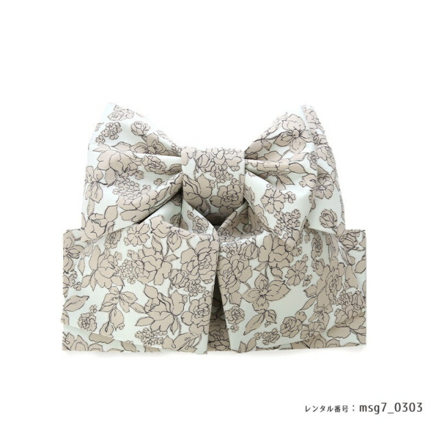 落ち着いた色味に、上品なレース、重厚感のあるタイプのデザインです。レースの地色は、「胡桃染(くるみぞめ)」と呼ばれるブラウンです。山野に自生する胡桃の樹皮や果皮の煎汁と灰汁で染めたとされている伝統色です。そして帯には「薔薇」が描かれます。美しい「薔薇」は愛と美の象徴です。シンプルな着物によく映えて、エレガンスで上品な雰囲気に仕上がっています。まるで大人の着物のような落ち着いた可愛さがこちらの着物の魅力。古典的ではないので、着物に馴染みが無い方も抵抗感なく着用していただけます。決して地味ではなく、余計なものをそぎ落としたシンプルさが美しく華やかで、是非おすすめしたい一着です。