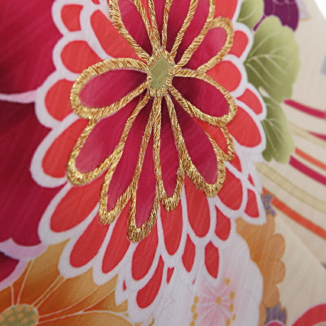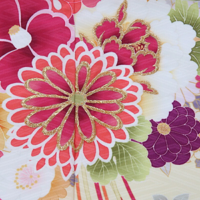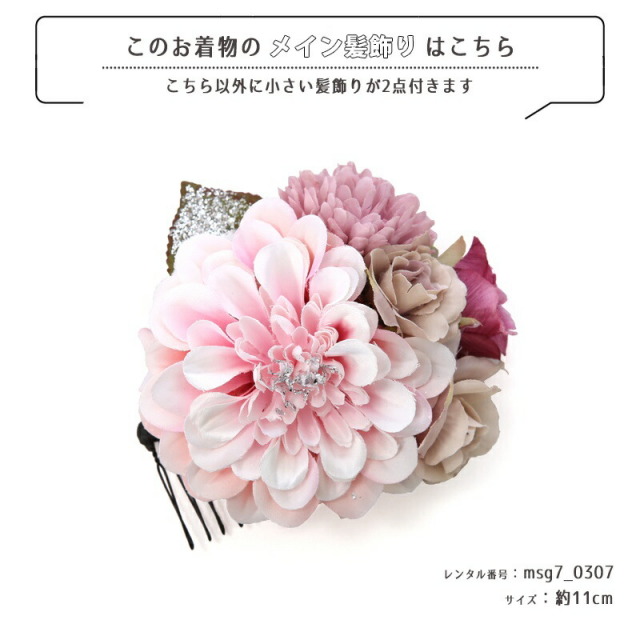 | コーディネート | 女の子七五三(7歳女の子用)に含まれる物:着物、長襦袢(カット袖)、作り帯、草履、バッグ、帯揚げ、箱迫、帯〆、しごき、末広(扇子)、足袋、腰紐(3本)、コーリンベルト、伊達締め、髪飾り |
