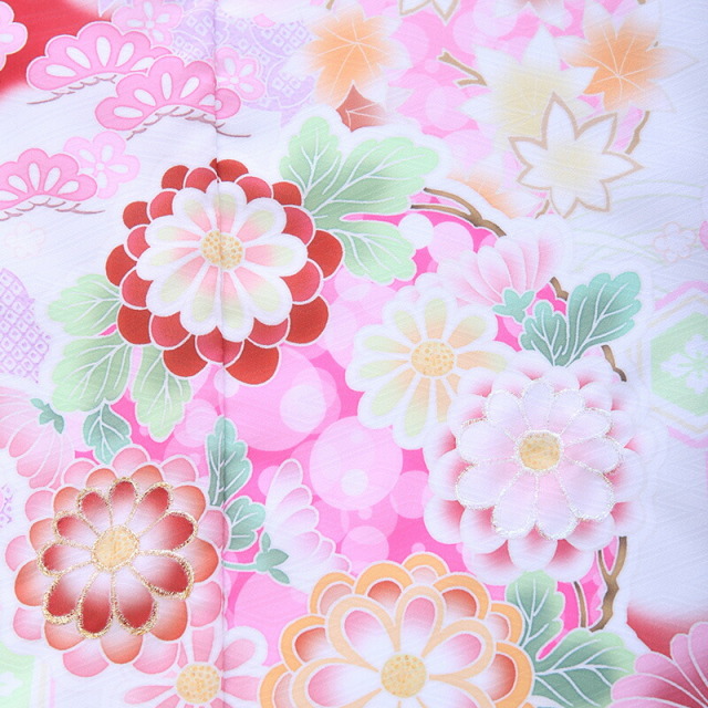| コーディネート | 女の子七五三(7歳女の子用)に含まれる物:着物、長襦袢(カット袖)、作り帯、草履、バッグ、帯揚げ、箱迫、帯〆、しごき、末広(扇子)、足袋、腰紐(3本)、コーリンベルト、伊達締め、髪飾り |