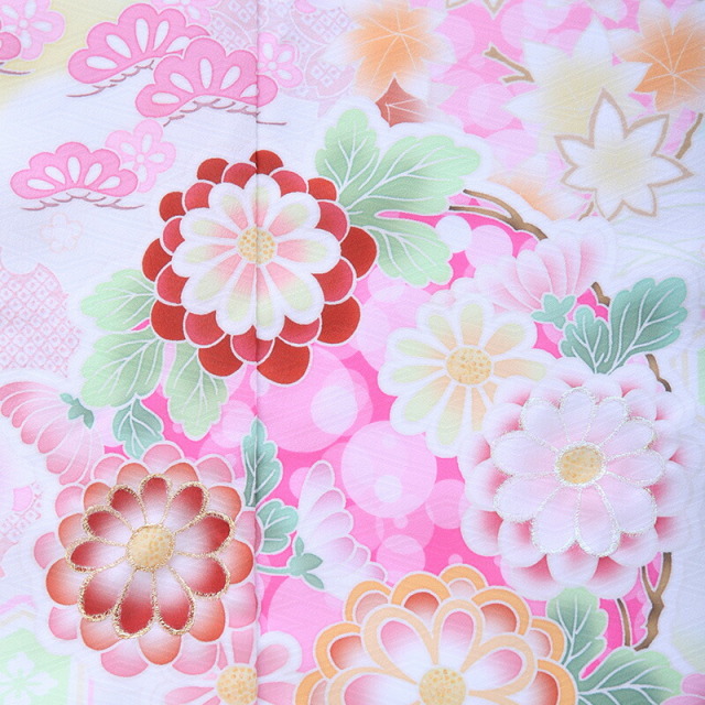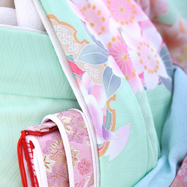| コーディネート | 女の子七五三(7歳女の子用)に含まれる物:着物、長襦袢(カット袖)、作り帯、草履、バッグ、帯揚げ、箱迫、帯〆、しごき、末広(扇子)、足袋、腰紐(3本)、コーリンベルト、伊達締め、髪飾り |