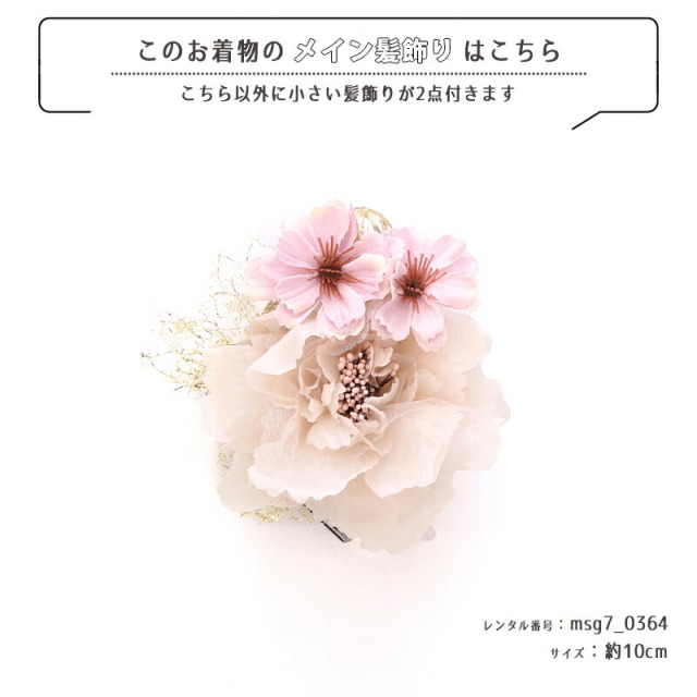 | コーディネート | 女の子七五三(7歳女の子用)に含まれる物:着物、長襦袢(カット袖)、作り帯、草履、バッグ、帯揚げ、箱迫、帯〆、しごき、末広(扇子)、足袋、腰紐(3本)、コーリンベルト、伊達締め、髪飾り |
