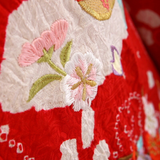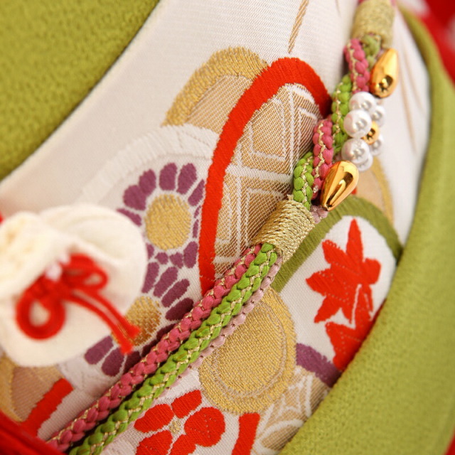 | コーディネート | 女の子七五三(7歳女の子用)に含まれる物:着物、長襦袢(カット袖)、手結び、草履、バッグ、帯揚げ、箱迫、帯〆、しごき、末広(扇子)、足袋、腰紐(3本)、コーリンベルト、伊達締め、帯まくら、板、衿芯、髪飾り |