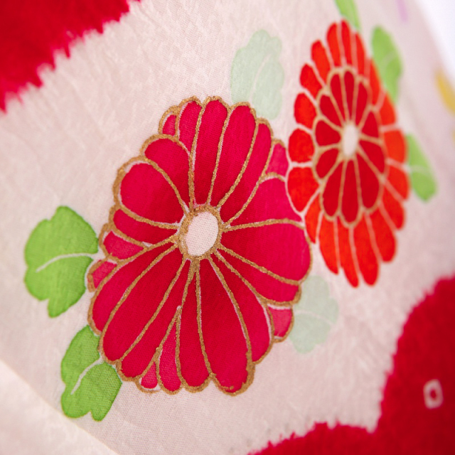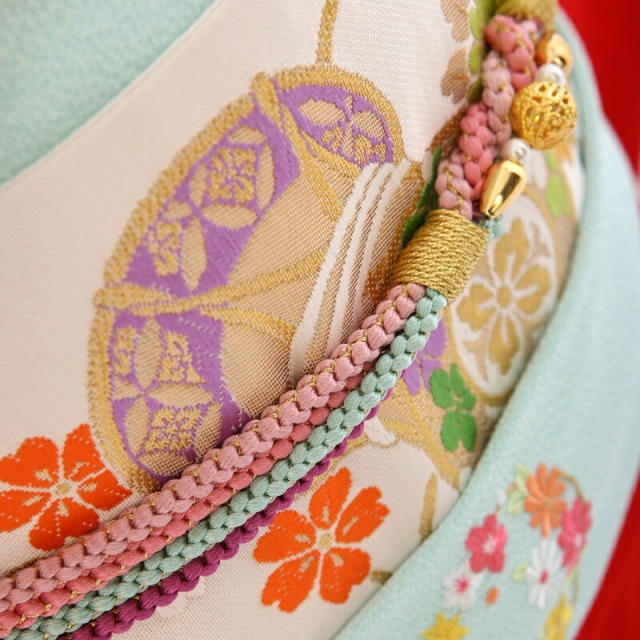 | コーディネート | 女の子七五三(7歳女の子用)に含まれる物:着物、長襦袢(カット袖)、手結び、草履、バッグ、帯揚げ、箱迫、帯〆、しごき、末広(扇子)、足袋、腰紐(3本)、コーリンベルト、伊達締め、帯まくら、板、衿芯、髪飾り |