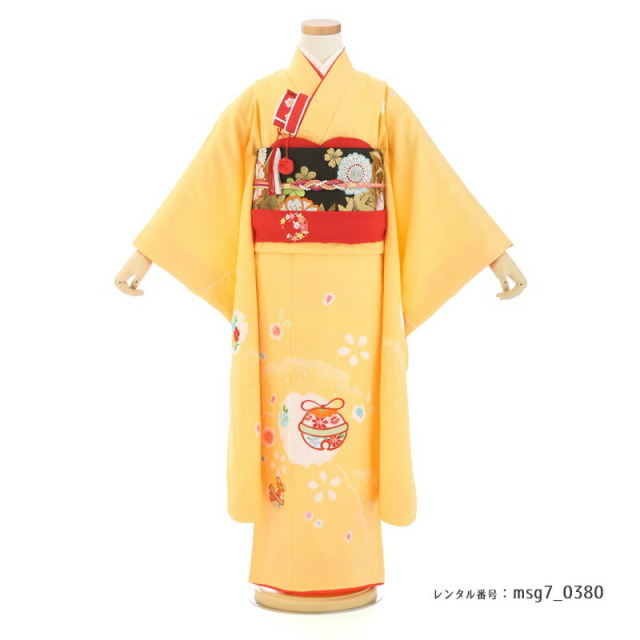 | コーディネート | 女の子七五三(7歳女の子用)に含まれる物:着物、長襦袢(カット袖)、手結び、草履、バッグ、帯揚げ、箱迫、帯〆、しごき、末広(扇子)、足袋、腰紐(3本)、コーリンベルト、伊達締め、帯まくら、板、衿芯、髪飾り |