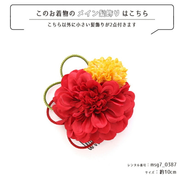 | コーディネート | 女の子七五三(7歳女の子用)に含まれる物:着物、長襦袢(カット袖)、作り帯、草履、バッグ、帯揚げ、箱迫、帯〆、しごき、末広(扇子)、足袋、腰紐(3本)、コーリンベルト、伊達締め、髪飾り |