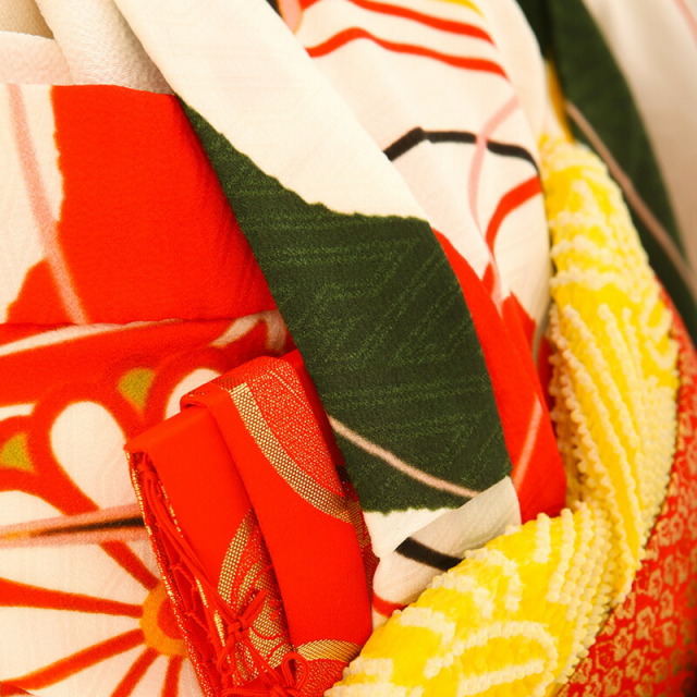 | コーディネート | 女の子七五三(7歳女の子用)に含まれる物:着物、長襦袢(カット袖)、作り帯、草履、バッグ、帯揚げ、箱迫、帯〆、しごき、末広(扇子)、足袋、腰紐(3本)、コーリンベルト、伊達締め、髪飾り |
