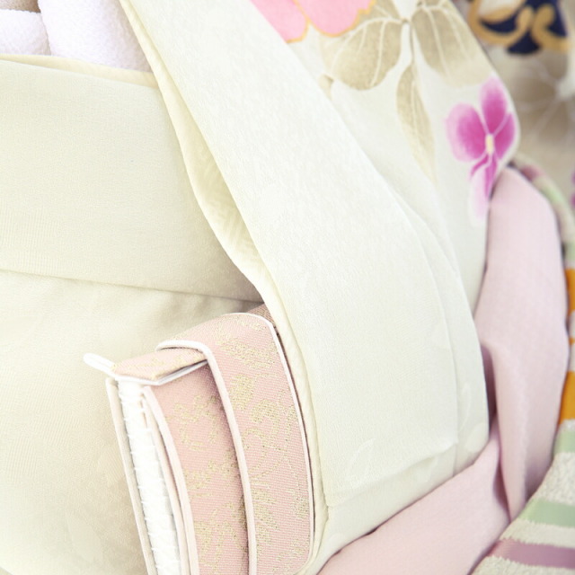 | コーディネート | 女の子七五三(7歳女の子用)に含まれる物:着物、長襦袢(カット袖)、作り帯、草履、バッグ、帯揚げ、箱迫、帯〆、しごき、末広(扇子)、足袋、腰紐(3本)、コーリンベルト、伊達締め、髪飾り |