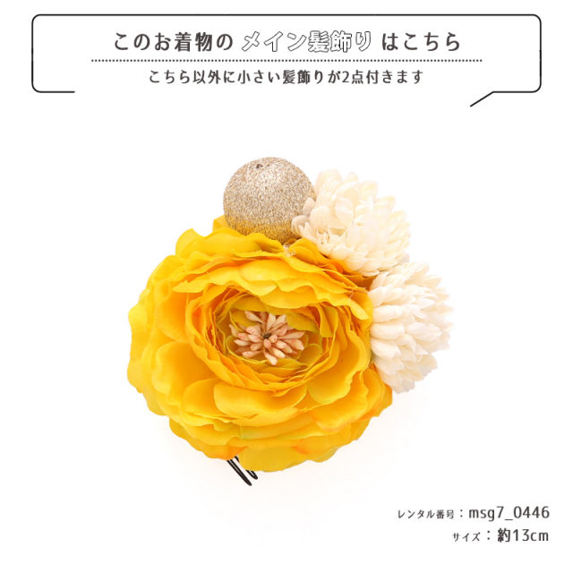 | コーディネート | 女の子七五三(7歳女の子用)に含まれる物:着物、長襦袢(カット袖)、作り帯、草履、バッグ、帯揚げ、箱迫、帯〆、しごき、末広(扇子)、足袋、腰紐(3本)、コーリンベルト、伊達締め、髪飾り |