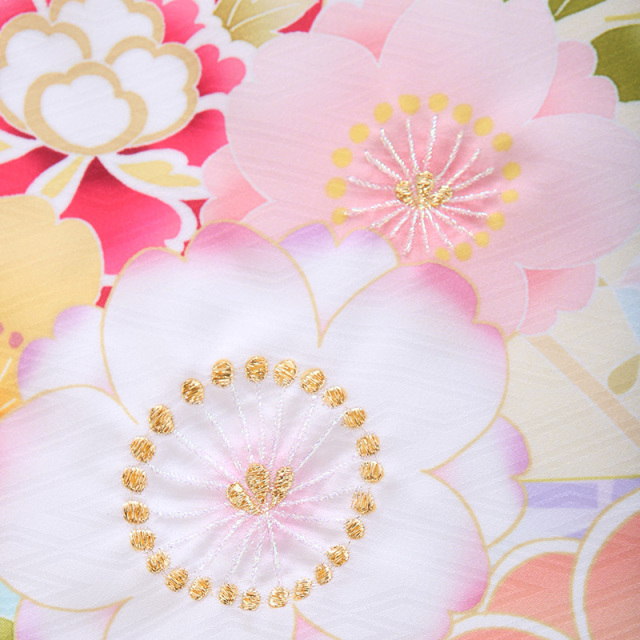 | コーディネート | 女の子七五三(7歳女の子用)に含まれる物:着物、長襦袢(カット袖)、作り帯、草履、バッグ、帯揚げ、箱迫、帯〆、しごき、末広(扇子)、足袋、腰紐(3本)、コーリンベルト、伊達締め、髪飾り |