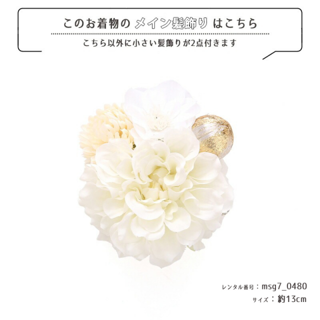 | コーディネート | 女の子七五三(7歳女の子用)に含まれる物:着物、長襦袢(カット袖)、作り帯、草履、バッグ、帯揚げ、箱迫、帯〆、しごき、末広(扇子)、足袋、腰紐(3本)、コーリンベルト、伊達締め、髪飾り |
