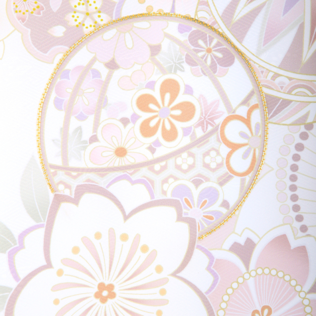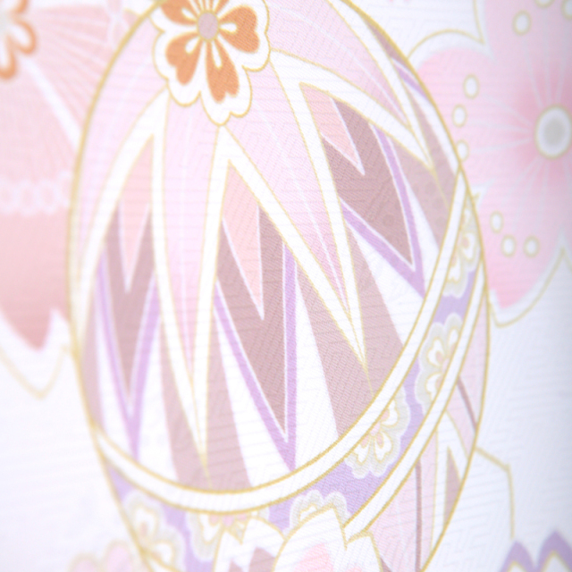 白地にほんのりとしたピンクベージュを重ね、鞠と桜の文様をやさしく描いた華やかな産着です。あたたかみのある色合いが全体を包み込み、可愛らしさと上品さを両立した印象に仕上がっています。お宮参りの晴れの日にふさわしいやさしい華やぎを添え、赤ちゃんの表情をより明るく引き立てます。やわらかな色味は写真映えにも優れ、ご家族の大切な記念を美しく残してくれる一着です。