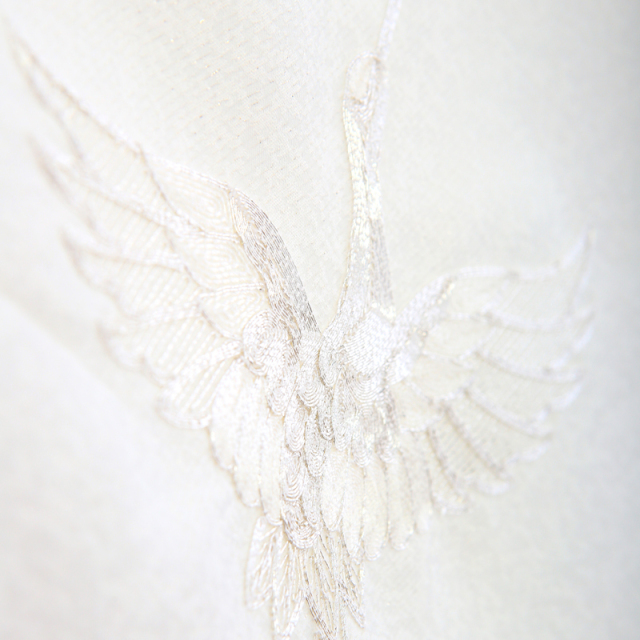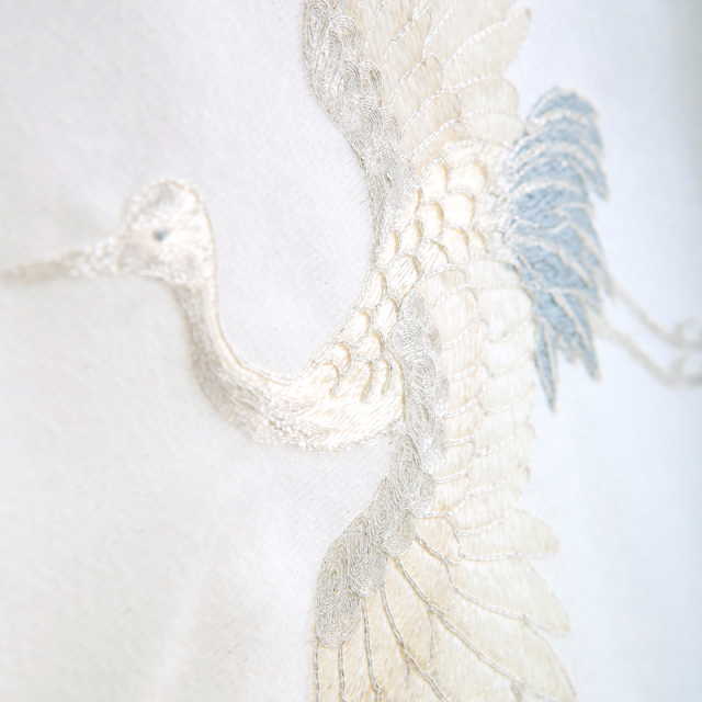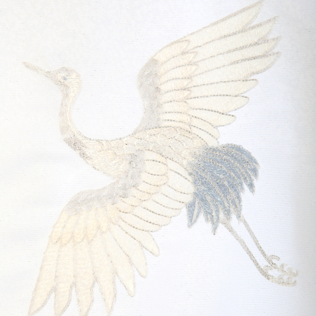 真っ白な地に銀糸の織りと鶴の刺繍を施した、格式ある美しさが魅力の産着です。鶴は「長寿」や「繁栄」を象徴する吉祥文様として古くから親しまれ、お宮参りにもふさわしい意味を持ちます。純白の清らかな色合いは赤ちゃんの無垢な美しさを際立たせ、特別な一日をより印象深いものに。上質で凛とした雰囲気を求める方におすすめの、気品あふれる一着です。