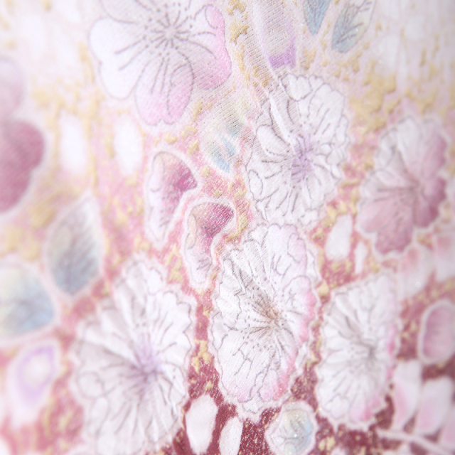 ふんわりとした淡いピンク地に、辻が花の繊細な花模様が優しく流れるように広がる一着です。全体を包み込むやわらかな色合いの中に、さりげなく施されたラメのきらめきが上品な華やぎを添え、光の加減で表情を変える美しさも魅力。花々が重なり合う意匠は、お子さまのこれからの健やかな成長と豊かなご縁を願うような穏やかさを感じさせます。桂由美ならではの洗練されたデザインと、正絹のしっとりとしたなめらかな風合いが調和し、抱かれる赤ちゃんの愛らしさをより一層引き立てます。お宮参りという大切な節目の日、ご家族の想いにやさしく寄り添い、あたたかな記憶として残るひとときを彩る、可憐で品格ある産着です。